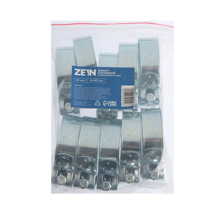 Хомут силовой ZEIN engr, диаметр 64-67 мм, ширина 22 мм, оцинкованный
