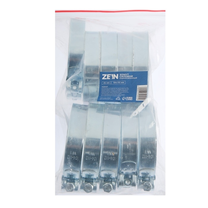 Хомут силовой ZEIN engr, диаметр 104-112 мм, ширина 24 мм, оцинкованный