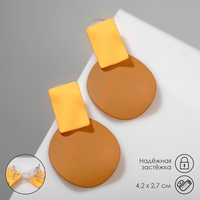 Серьги металл «Яркость» геометрия, цвет жёлто-коричневый
