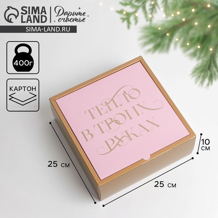 Коробка подарочная новогодняя складная «Тепло в твоих руках», 25 х 10 х 25 см, Новый год