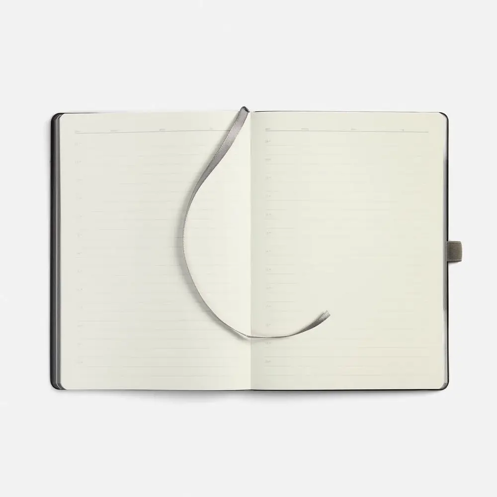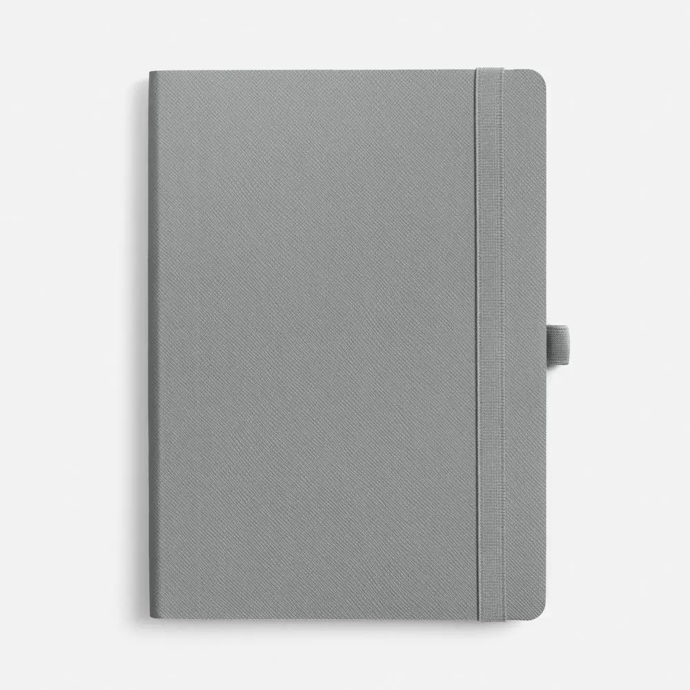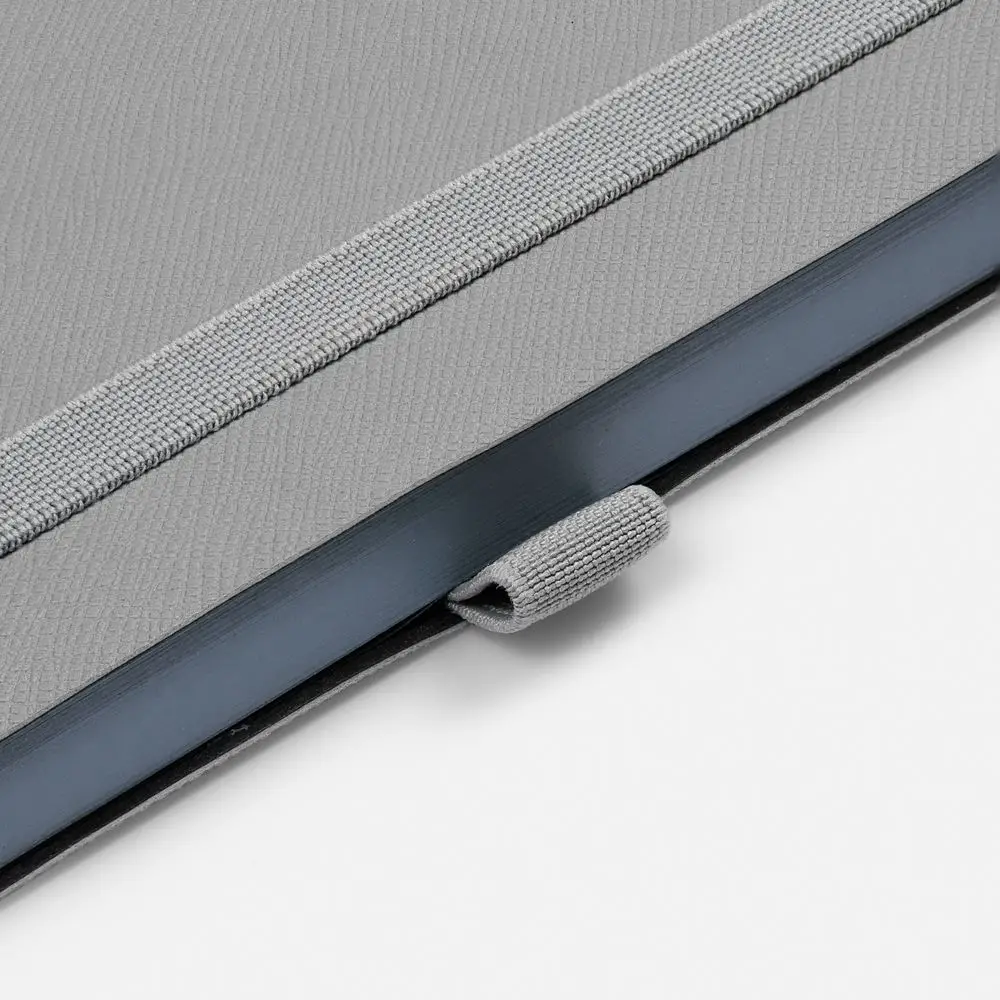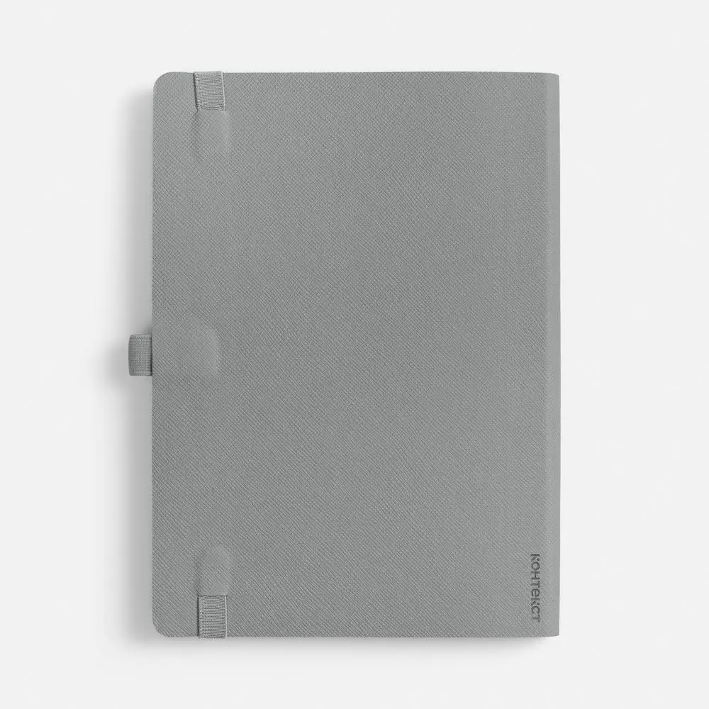 Ежедневник с гибкой обложкой, выполнен из материала Nice Touch, серый СС, дополнен цветными ляссе и петлей-резинкой для ручки.