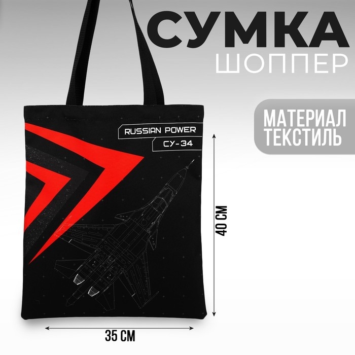Сумка шоппер Putin team, 35 х 40 х 0.5 см, чёрная