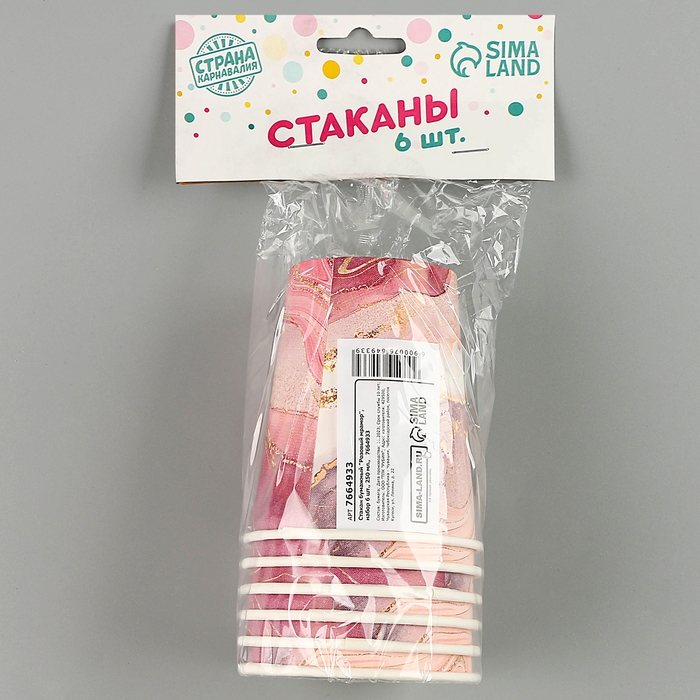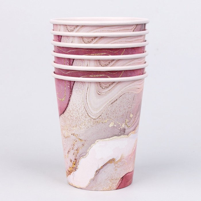 Стакан одноразовый бумажный "Розовый мрамор", набор 6 шт, 250 мл