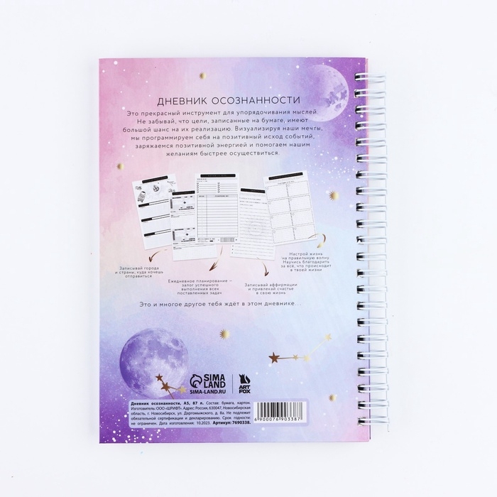 Дневник осознанности «Вселенная внутри тебя» в тв. обл. с тиснением А5, 86 л