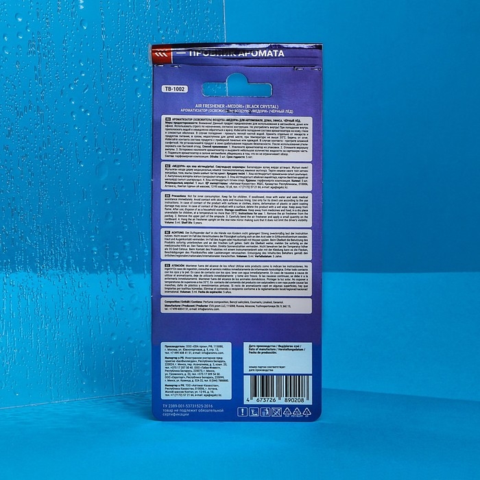 Ароматизатор на зеркало Medori, Черный лед, жидкий, 5 мл TB-1002