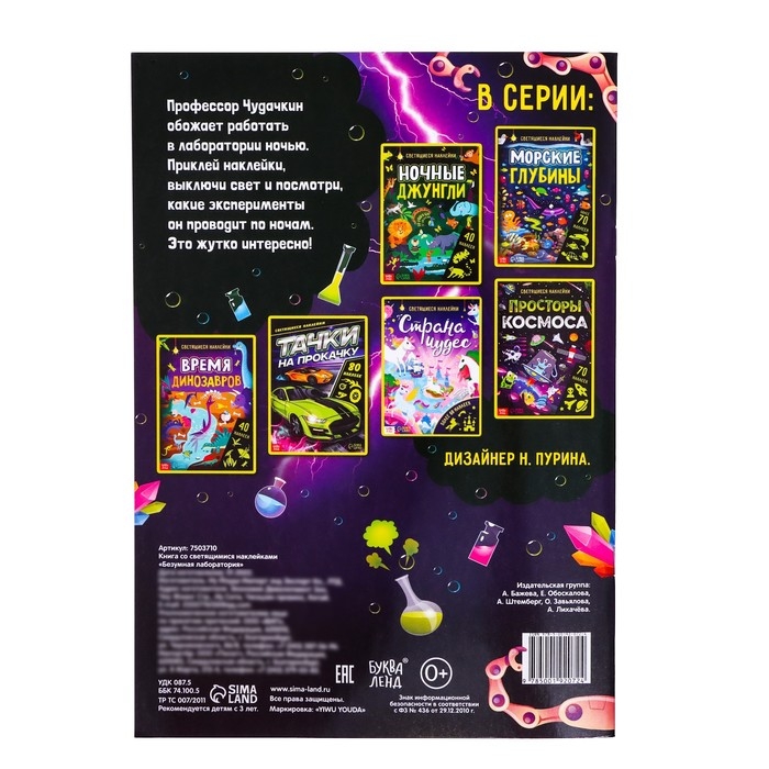 Книга «Безумная лаборатория», со светящимися наклейками, 90 наклеек, 4 стр.