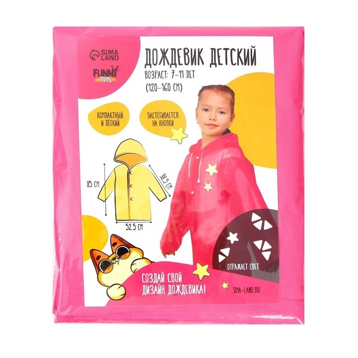 Дождевик детский со светоотражающими элементами, цвет розовый (120-160 см)