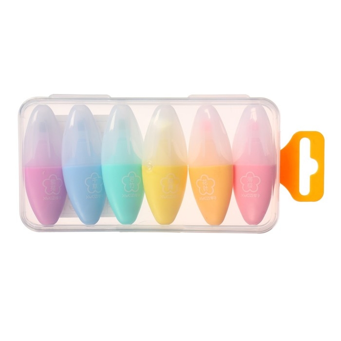 Набор маркеров-текстовыделителей, 6 пастельных цветов, корпус квадратный
