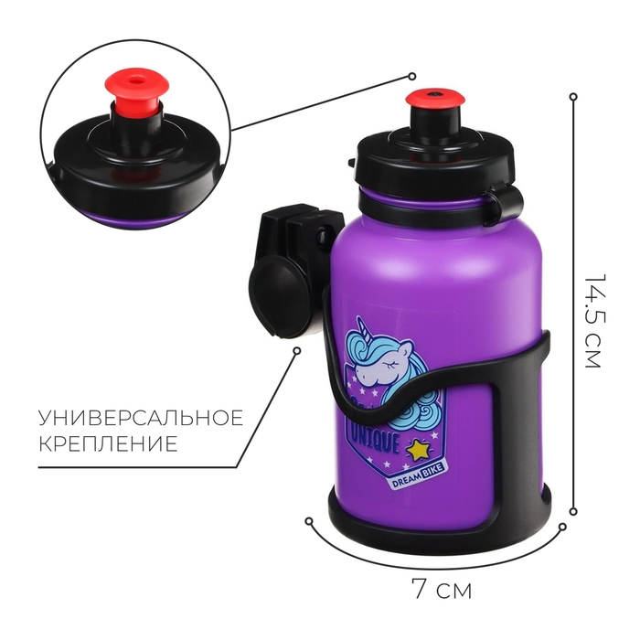 Велофляга Dream Bike, с флягодержателем, 320 мл, цвет фиолетовый