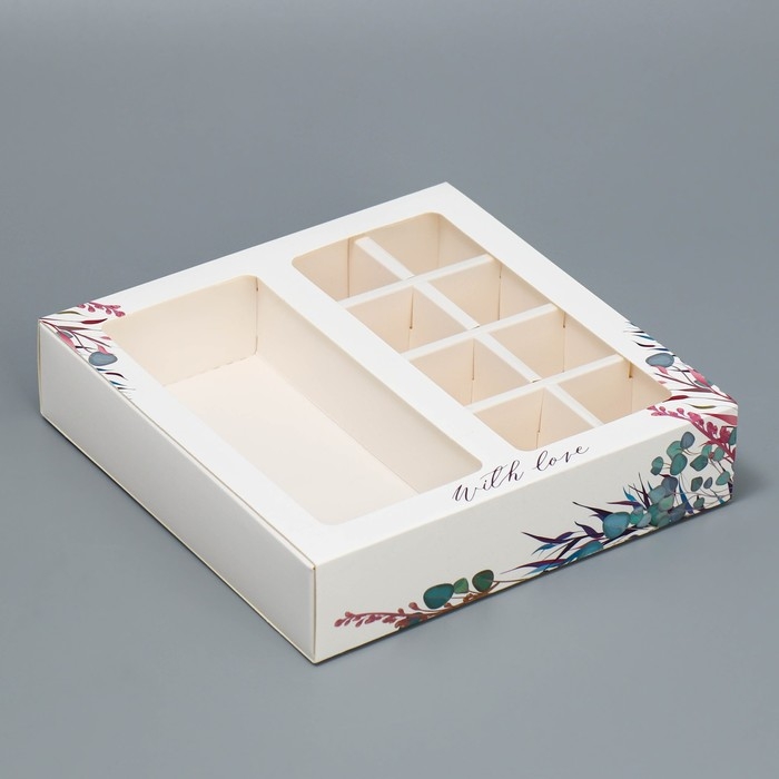 Коробка под 8 конфет и шоколад с ячейками, кондитерская упаковка, With Love 18 х 18 х 4 см