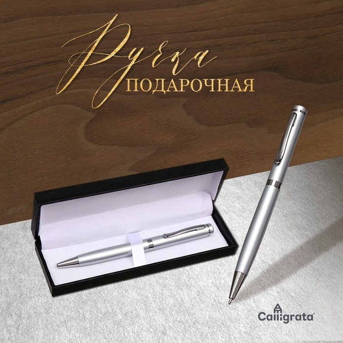 Ручка шариковая подарочная, корпус металлический, серебристый