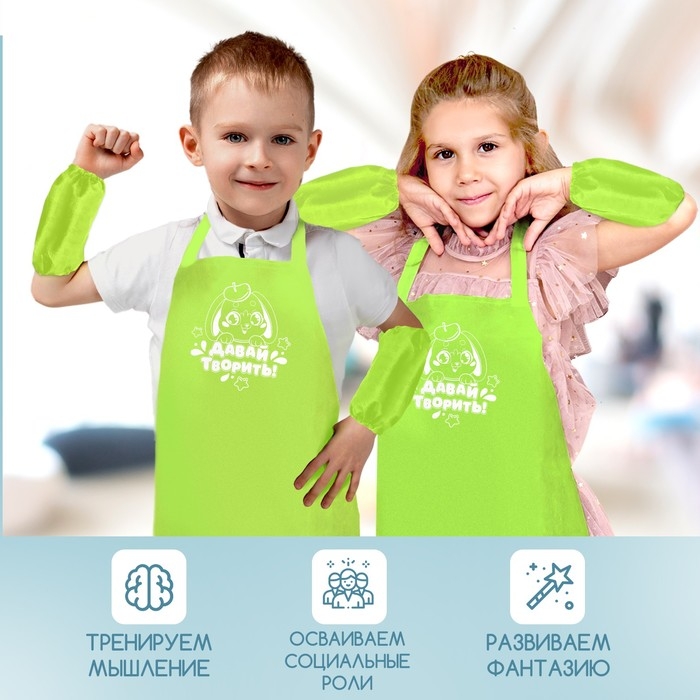 Фартук из нетканого материала подходит для занятий творчеством с использованием сухих материалов (размер подходит для детей до 3-х лет: 60 × 40 см):