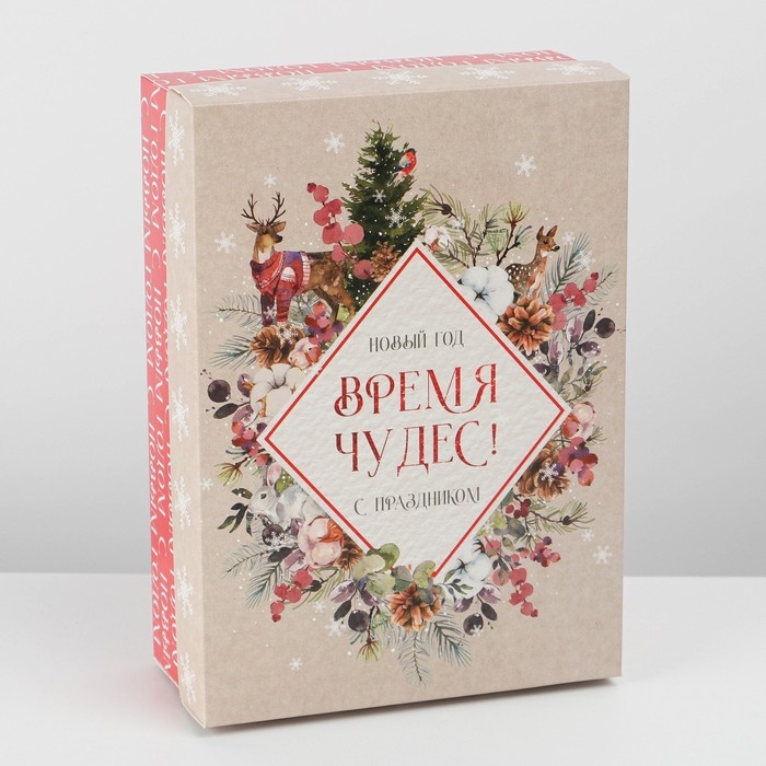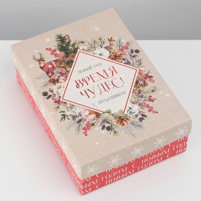 Коробка подарочная новогодняя складная «Акварель новогодняя», 21 х 15 х 7 см, Новый год