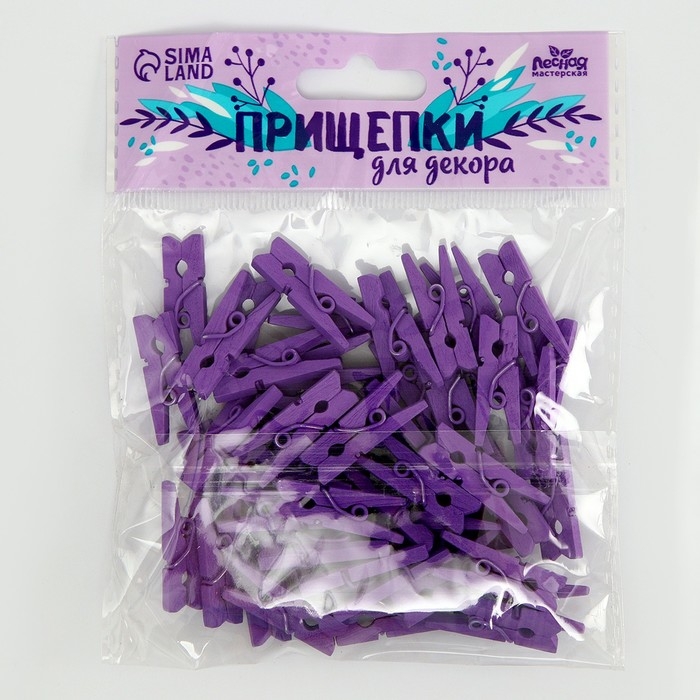 Набор прищепок для декора 50 шт., фиолетовые — 2,5 см