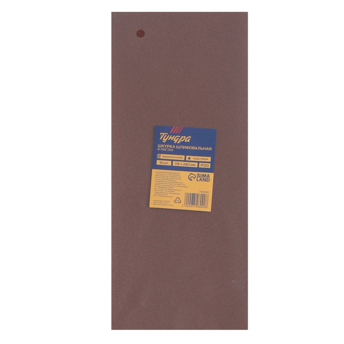 Шкурка шлифовальная в листах ТУНДРА, на бумажной основе водост., 115 х 280, Р120, 10 шт.