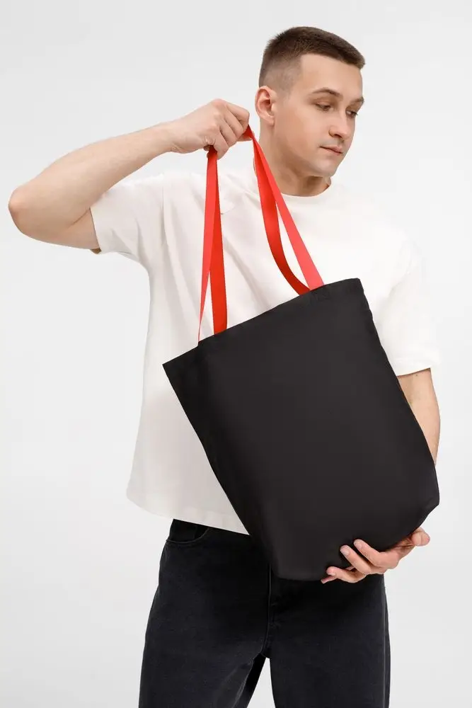 Базовый шопер разработан в рамках единой коллекции одежды и аксессуаров и легко комбинируется с ее элементами. Специально спроектированные лекала и технологии пошива открывают простор для любых вариантов кастомизации и нанесения изображений. На видимой части изделий нет лейблов с айдентикой бренда, а название бренда с уходника легко удалить.