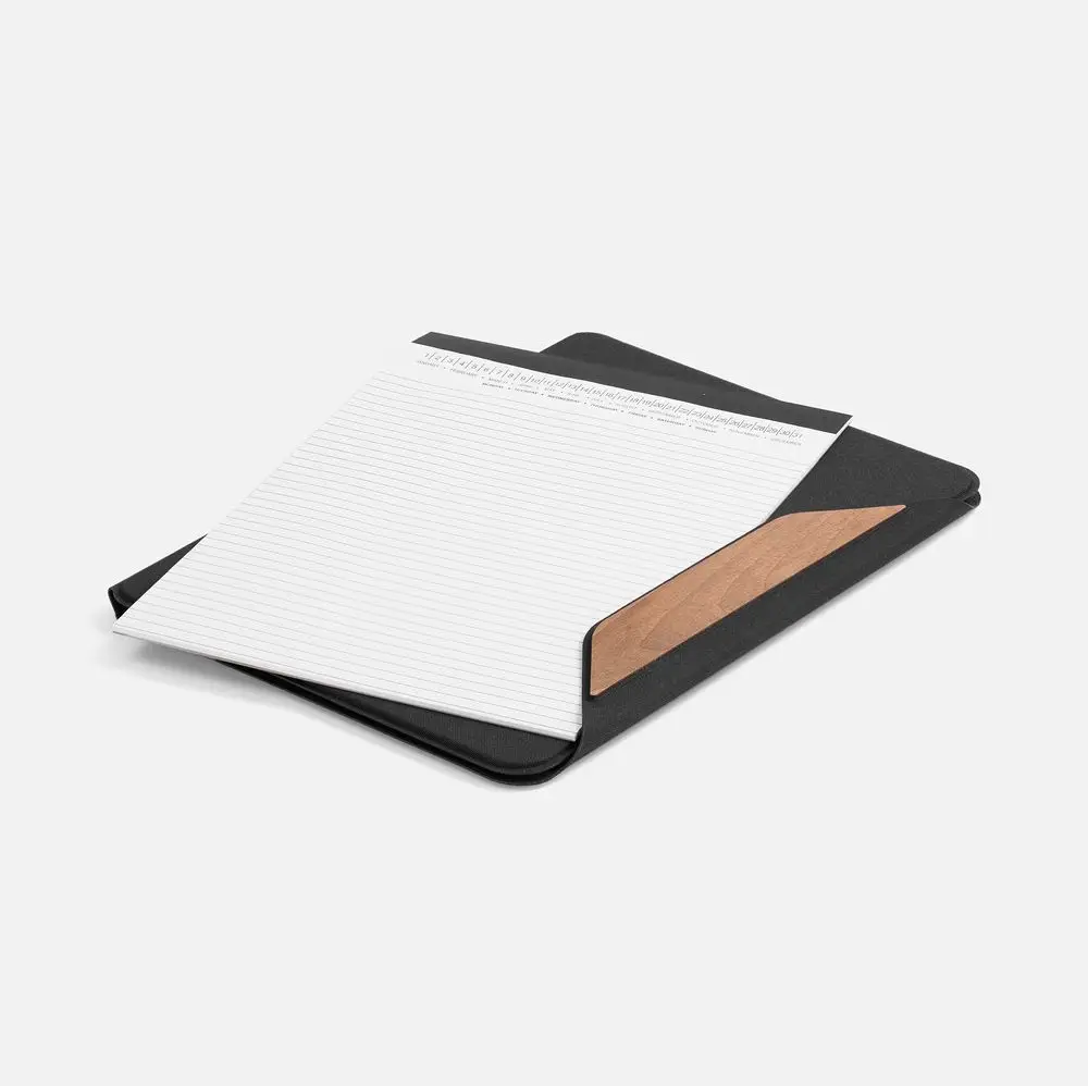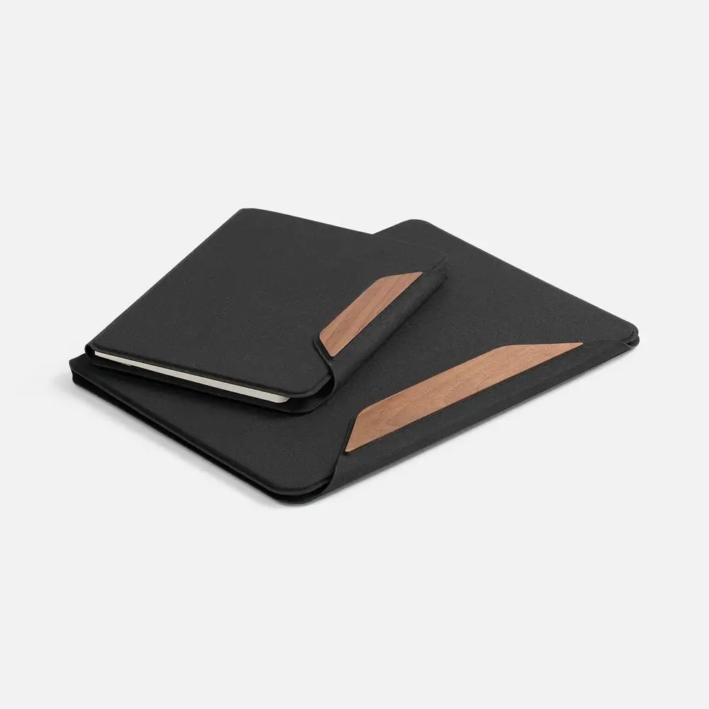 В папке множество карманов для эффективной организации важных бумаг, карточек и визиток — чтобы всегда иметь самое необходимое по рукой. Папка надежно закрывается на магнитный клапан с контрастной деревянной вставкой.