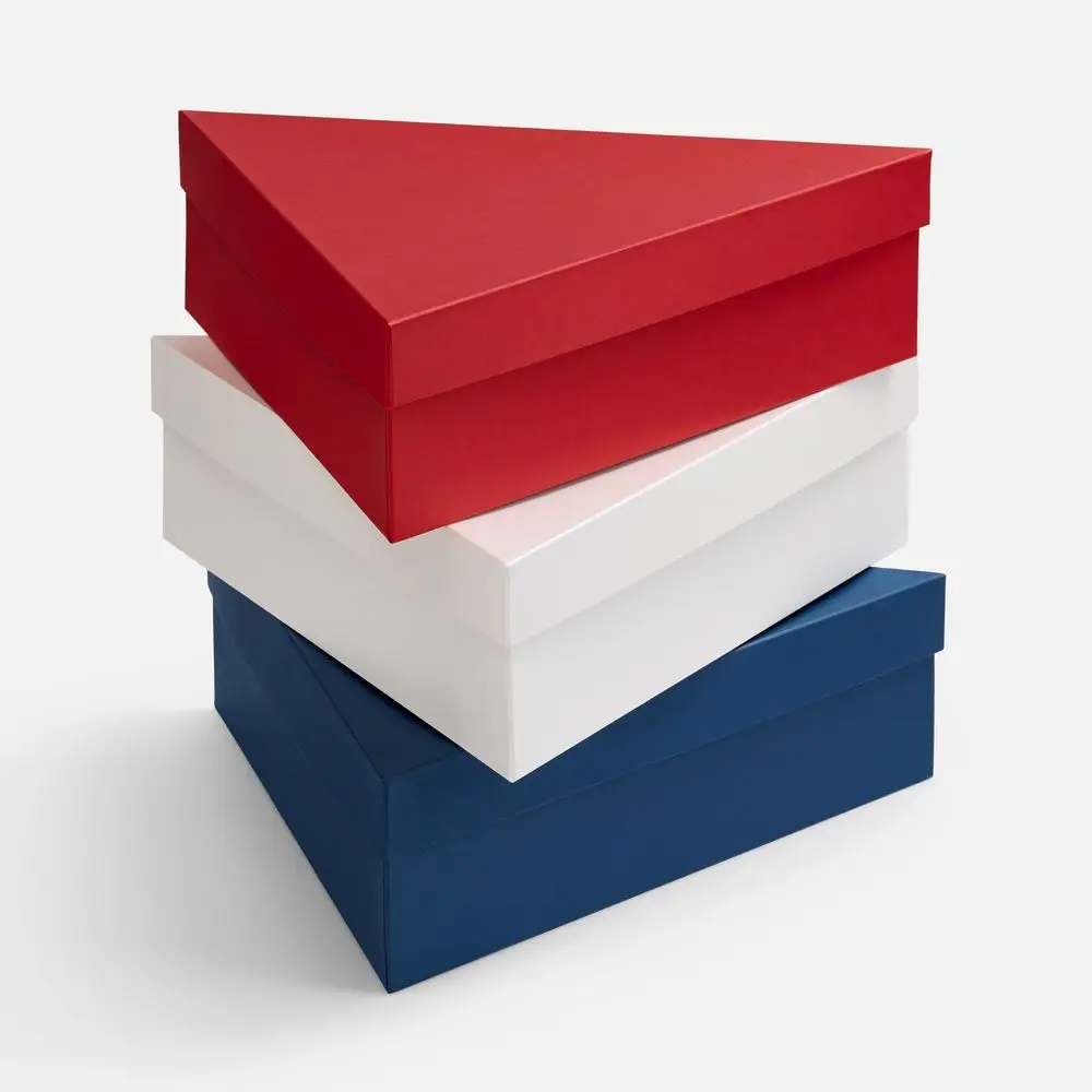 Нетипичная форма коробки привлекает внимание и может сделать подарок более запоминающимся. Треугольник ассоциируется с динамичностью, оригинальностью и креативностью, что может стать важным элементом позиционирования.