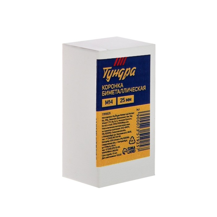 Коронка биметаллическая ТУНДРА, 25 мм, M14