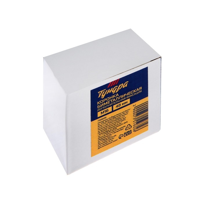 Коронка биметаллическая ТУНДРА, 48 мм, M16 с дополнительной фиксацией