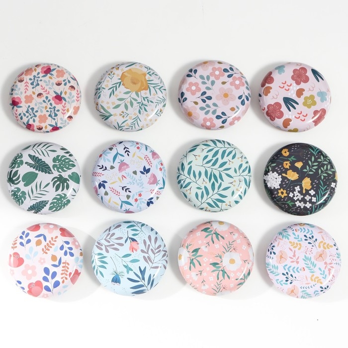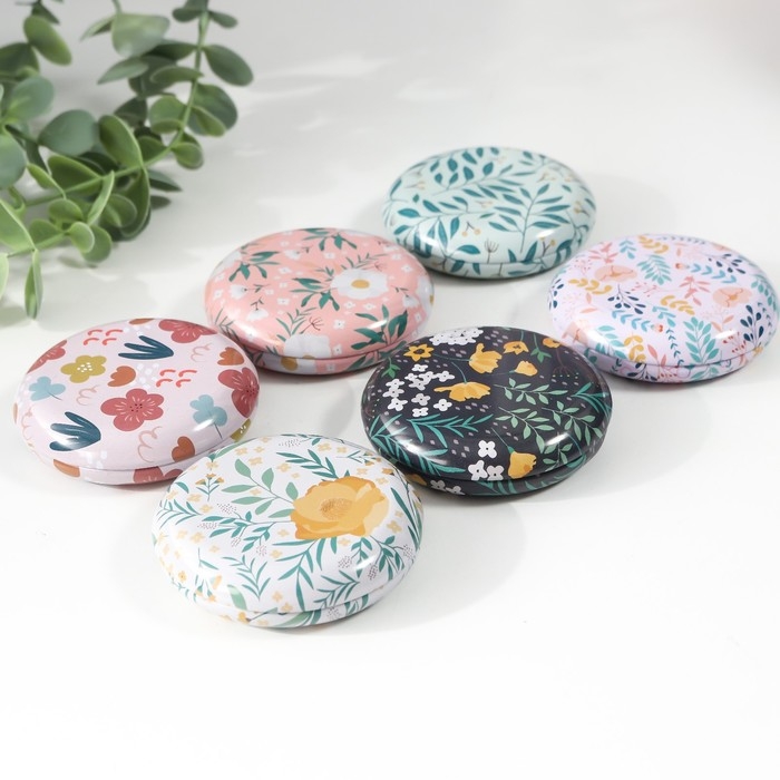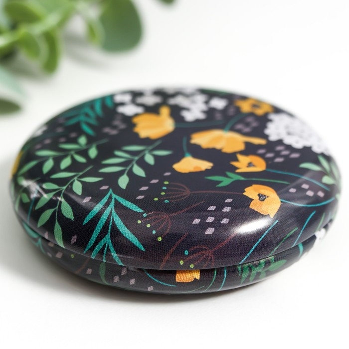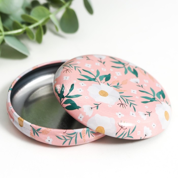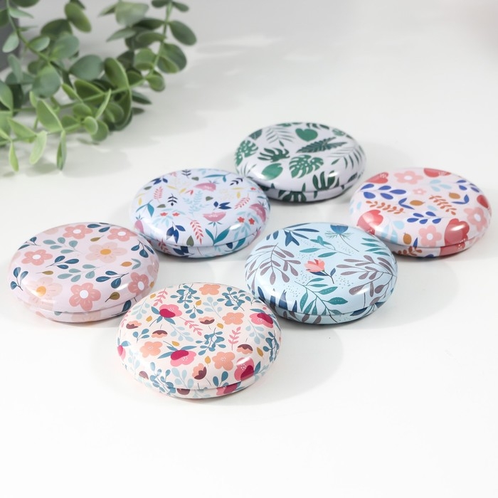 Шкатулка металл круглая "Цветы и листья" фасовка 12 шт 1,8х7х7 см