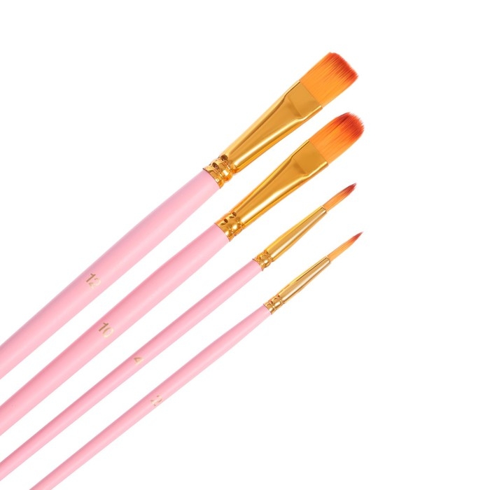 Набор кистей синтетика 4 штуки (№2,10,12,6), в блистере, МИКС