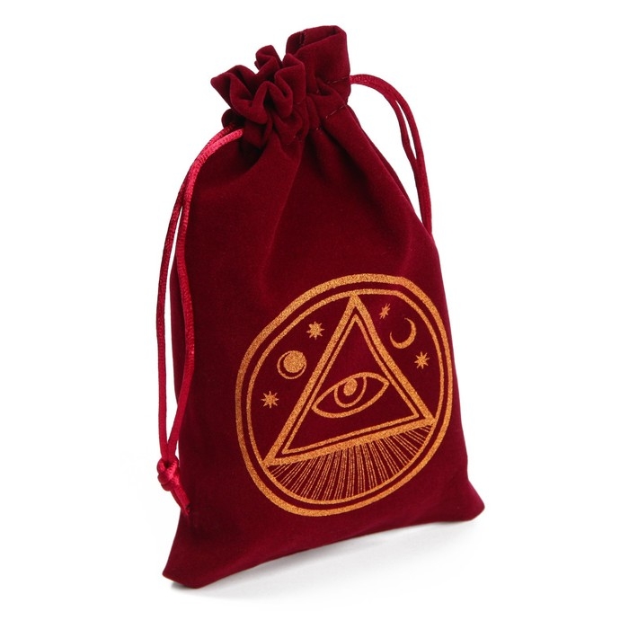 Мешочек для Таро, на Хэллоуин «Всевидящее око», бархатный, бордовый, 12х18 см
