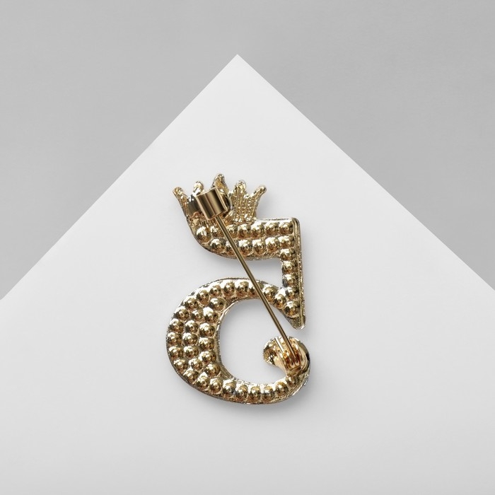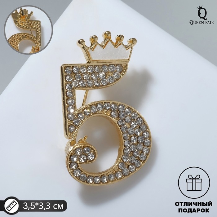 Брошь «Пятёрка» с короной, цвет белый в золоте