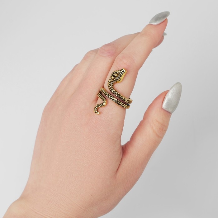 Новый год! Символ года 2025! Кольцо «Змея» два глаза, цвет чернёное золото, безразмерное