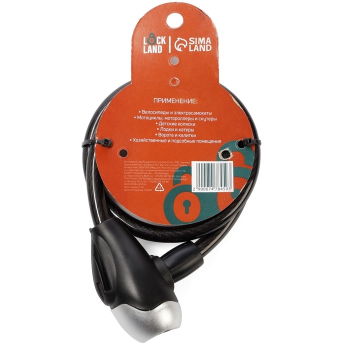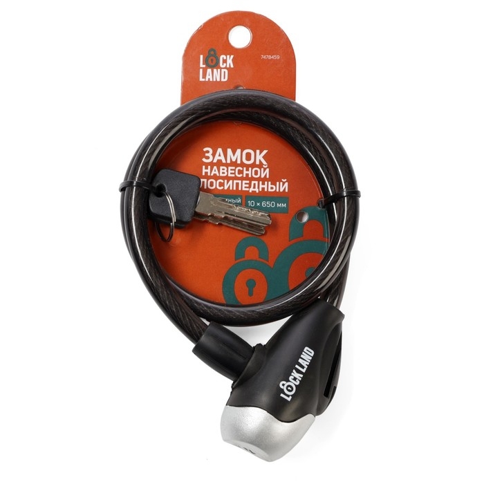 Замок навесной велосипедный LOCKLAND, 10х650 мм, перфорированный ключ, цвет черный