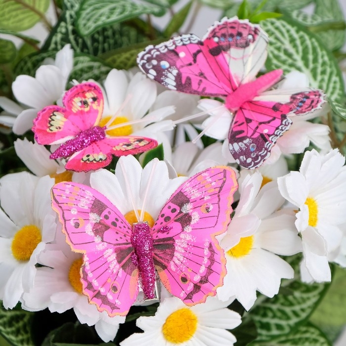 Бабочка для декора и флористики, на прищепке, пластиковая, микс, 1 шт., 7,5 х 5 х 1 см