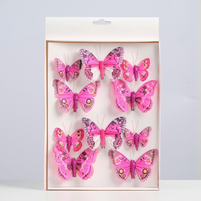Бабочки для декора и флористики, на прищепке, пластиковые, микс, 5 см и 8 см