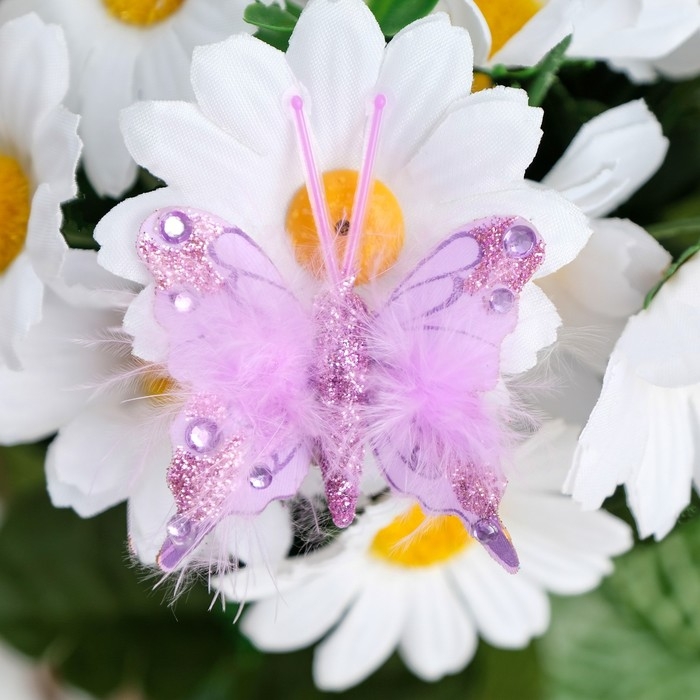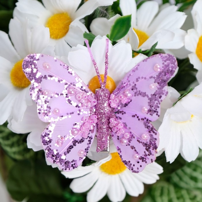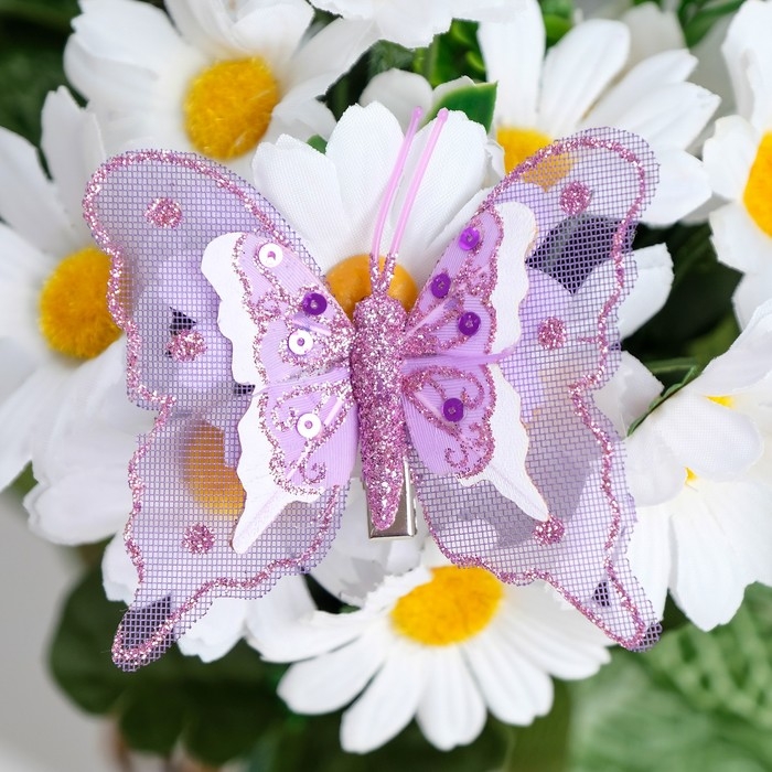 Бабочка для декора и флористики, на прищепке, пластиковая, микс, 1 шт., 7,5 х 5 х 1 см