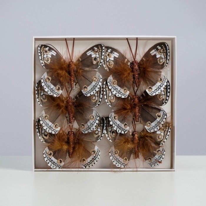 Бабочки для декора и флористики, на прищепке, пластиковые, коричневые, микс, 5 см и 8 см