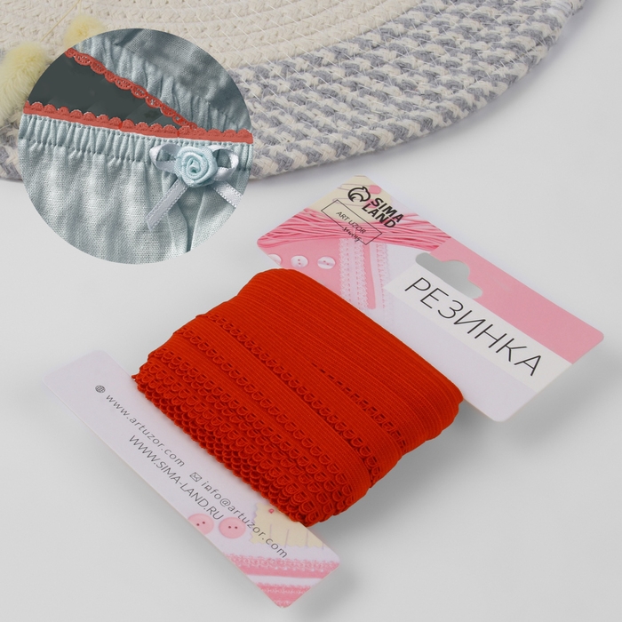 Резинка ажурная бельевая, 10 мм, 10 ± 1 м, цвет красный