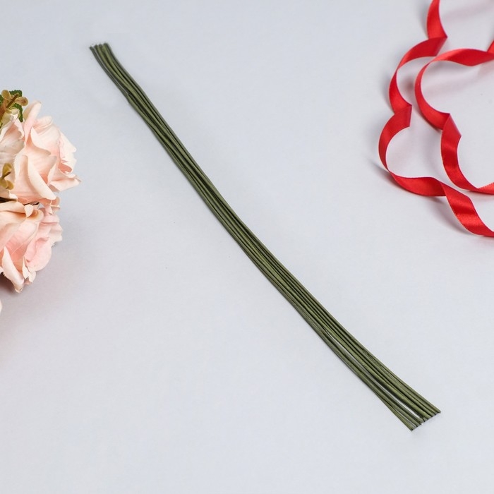 Флористическая проволока в бумажной оплётке "Зелёная", длина 60 см, 2 мм, набор 10 шт
