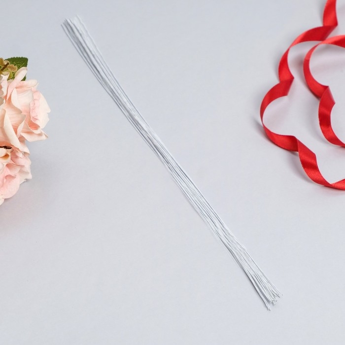 Флористическая проволока в бумажной оплётке "Белая", длина 36 см, 0,65 мм, набор 20 шт