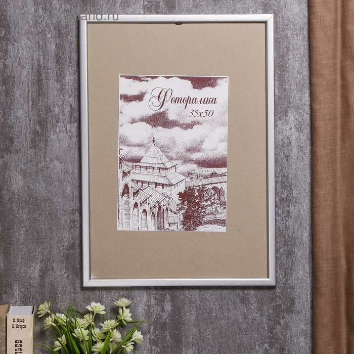 Фоторамка сосна с19 серебро 35х50 см (пластиковый экран)
