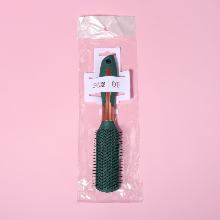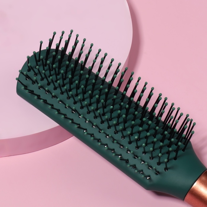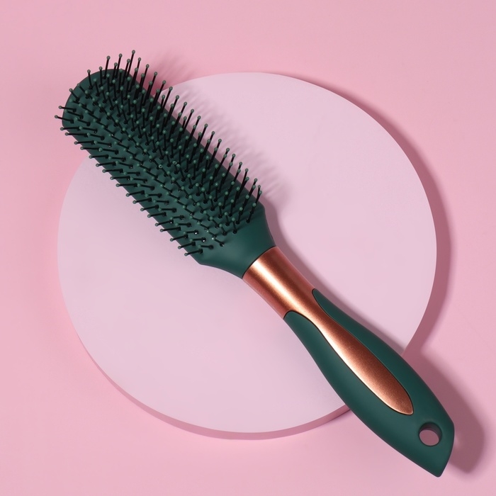 Расчёска массажная, прорезиненная ручка, 5 × 24 см, цвет зелёный/золотистый