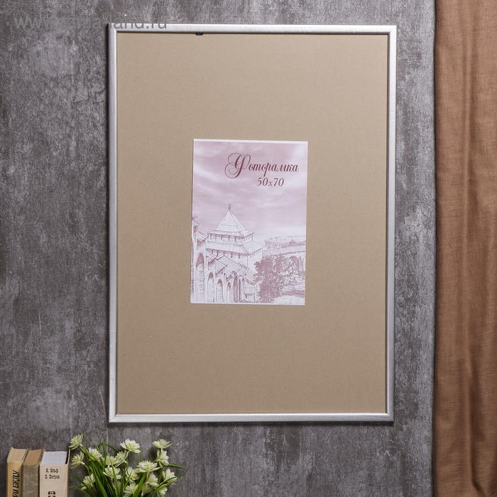Фоторамка сосна с19 серебро 50х70 см (пластиковый экран)