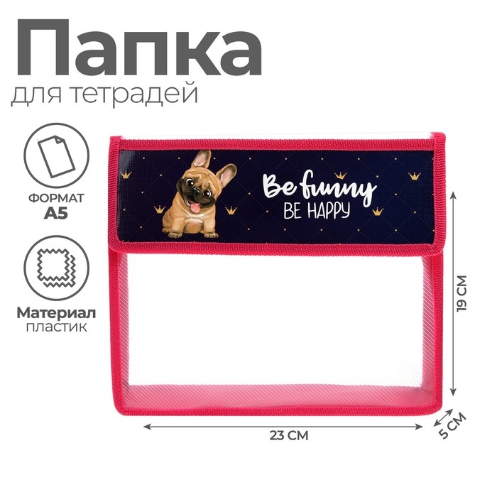 Папка для тетрадей А5 (230 х 190 х 50 мм), с клапаном на липучке, пластик/текстиль, Calligrata, "Бульдог"