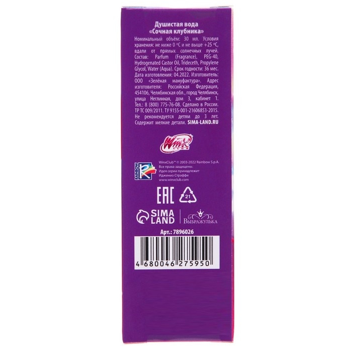 Душистая вода, аромат клубники, 30 мл "Сочная клубника", WINX