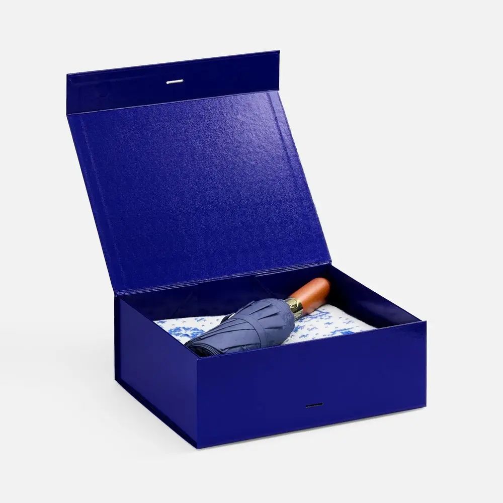 Коробка Silk с ложементом под ежедневник 15х21 см и ручку, ver.2, синяя