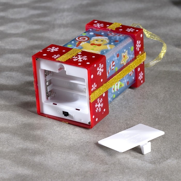 Светодиодная фигура «Красный подарок с пряником» 6.3 × 11.5 × 6.3 см, пластик, батарейки АААх3 (не в комплекте), эффект пламени