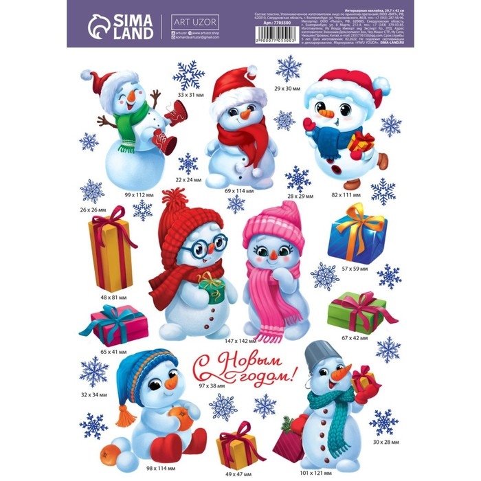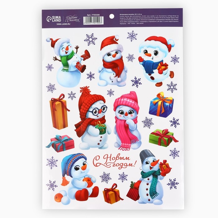 Наклейки новогодние, интерьерные «Снеговички», 29.7 х 42 см, Новый год