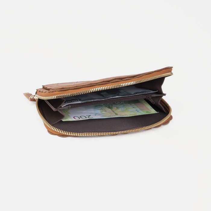 Кошелёк женский на молнии, цвет коричневый