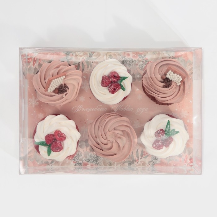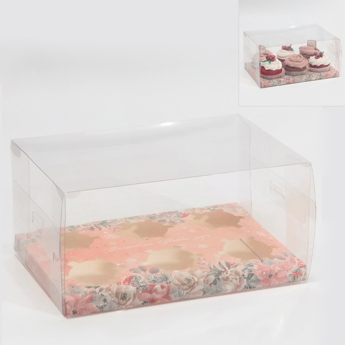 Коробка для капкейка «Зимние цветы», 23 х 16 х 11.5 см, Новый год