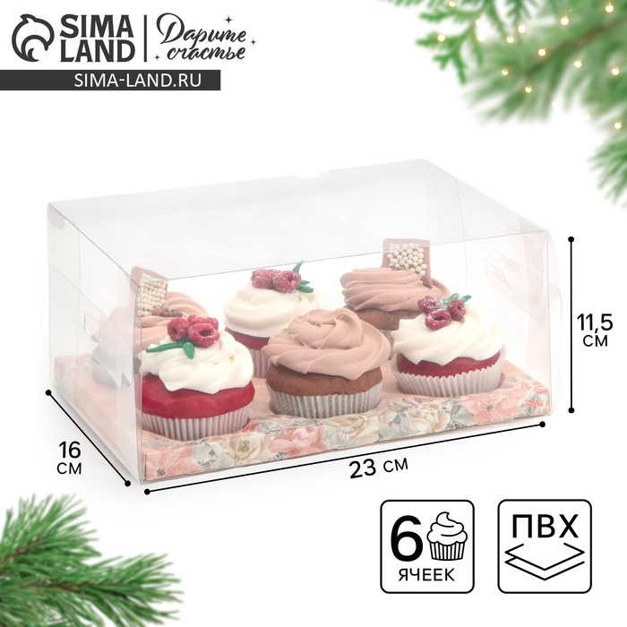 Коробка для 6 капкейков, белая 23,5 х 16 х 14 см