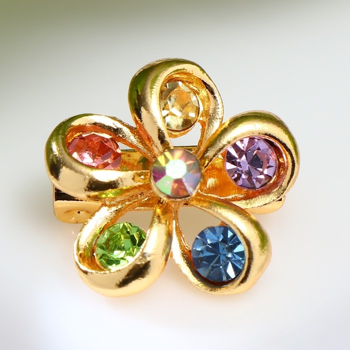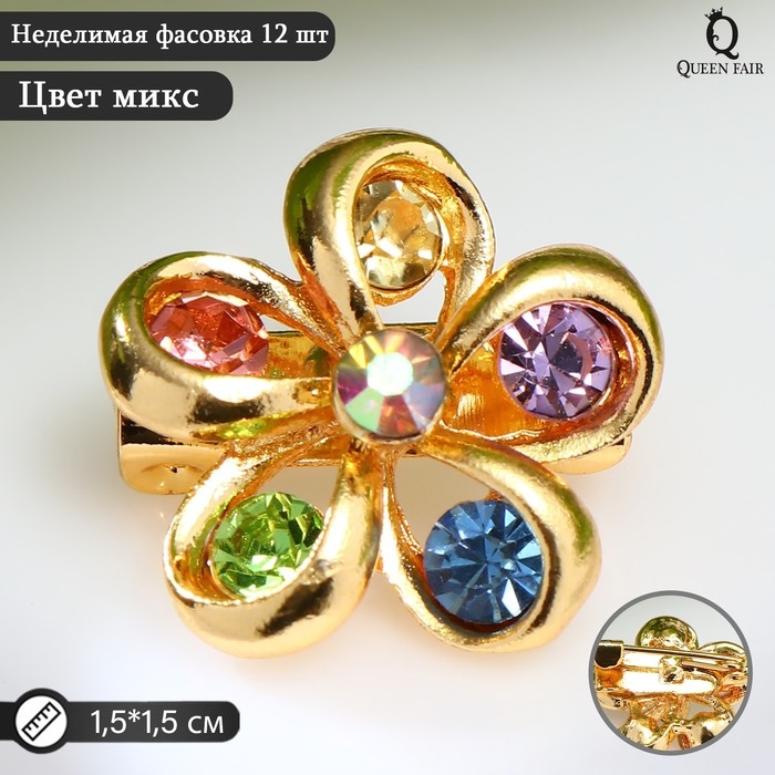 Брошь «Цветочек» пятилистник, цветная в жёлтом золоте (неделимая фасовка 12 шт., цена за шт.)