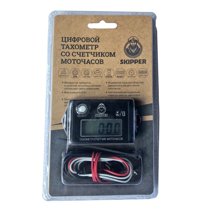 - Тахометр со счетчиком моточасов и индекацией межсервисного интервала, встроенные элемент питания, без подсветки дисплея,влагозащита IP68, длина кабеля 1,45м